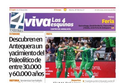 Periódico | VIVA Las 4 Esquinas 16 mayo – Descubren en Antequera un yacimiento del Paleolítico de entre 30.000 y 60.000 años