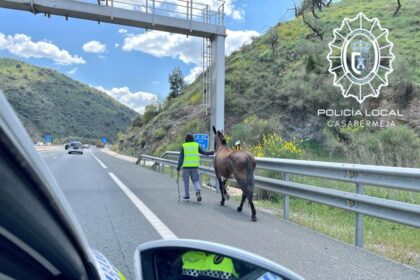 La Policía Local de Casabermeja captura a un caballo que iba al galope por la autovía