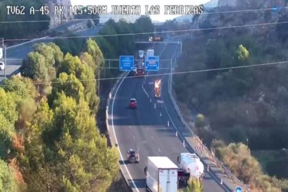 Cortada al tráfico la A-92 en Villanueva del Trabuco por el vuelco de un camión
