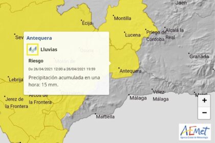 La Aemet activa el aviso amarillo por lluvias en la comarca de Antequera