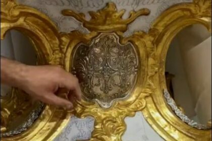 El orfebre José Cantos trabaja para devolver a la peana procesional del Rosario de Antequera su platería original