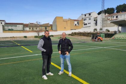 Villanueva del Trabuco comienza el arreglo del césped del campo de fútbol dañado por la DANA