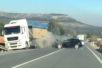 Herido en una colisión entre un turismo y un camión en Antequera (VÍDEO)