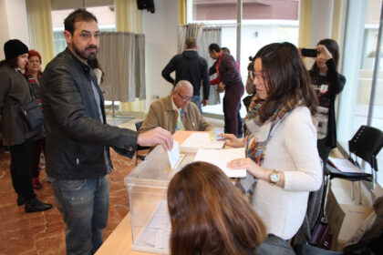 Fran Matas (IU-UP) acuden con su madre y su hermana a votar a calle Picadero y apela al voto de la «rebeldía»