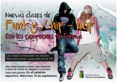 El Ayuntamiento de Villanueva de Algaidas organiza clases de funky / hip hop a partir del 23 de Septiembre