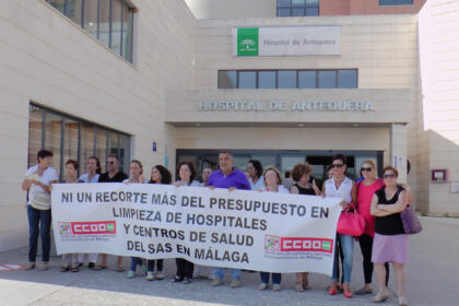 Una veintena de personas se concentra a las puertas del Hospital de Antequera en contra de los recortes en limpieza hospitalaria