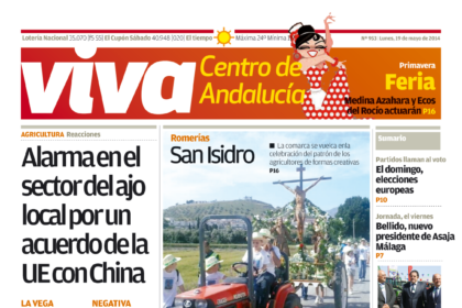 Alarma en el sector del ajo, niños portan a San Isidro y Bellido, nuevo presidente de Asaja, en el periódico Viva de Antequera