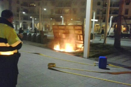 Varios contenedores arden en la plaza Fernández Viagas de Antequera en la noche del sábado por causa de los petardos