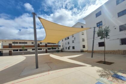 Villanueva del Trabuco instala un toldo para dar sombra en el colegio López Mayor