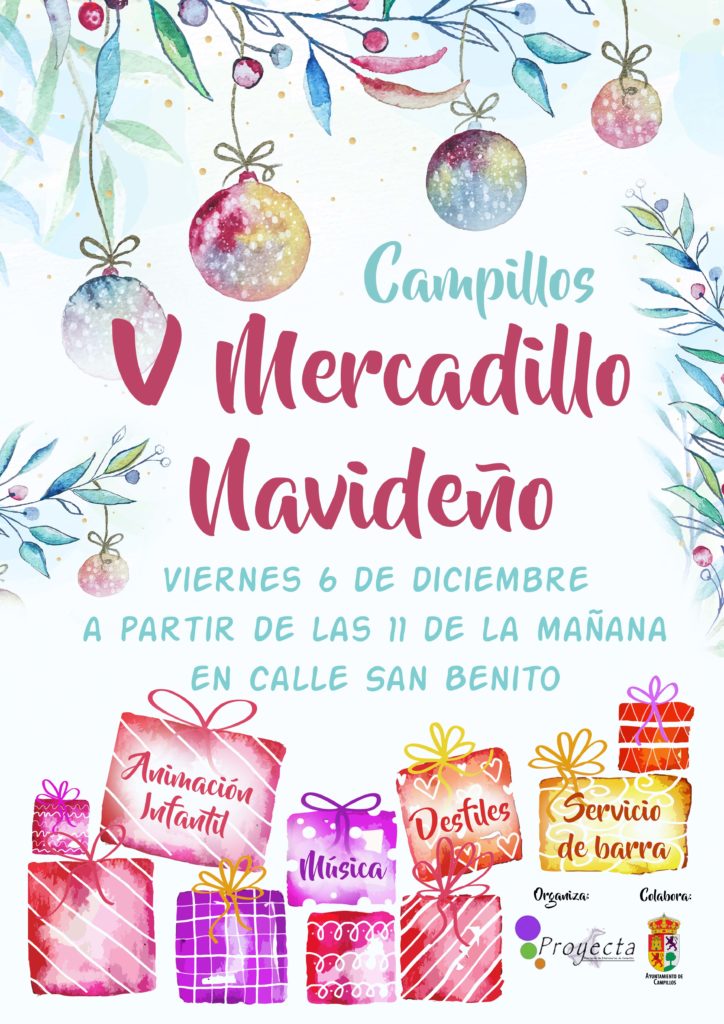 La zona semipeatonal de calle San Benito acoge este viernes, 6 de diciembre, el ‘V Mercadillo Navideño’ de Campillos, organizado por la Concejalía de Comercio, Turismo y Empleo del Ayuntamiento de Campillos y la asociación de mujeres empresarias ‘Proyecta’.