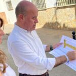 Acompañado por el alcalde, José Alberto Naranjo, ha recorrido las obras para cubrir la pista polideportiva, un proyecto financiado por la Diputación con 440.000 euros