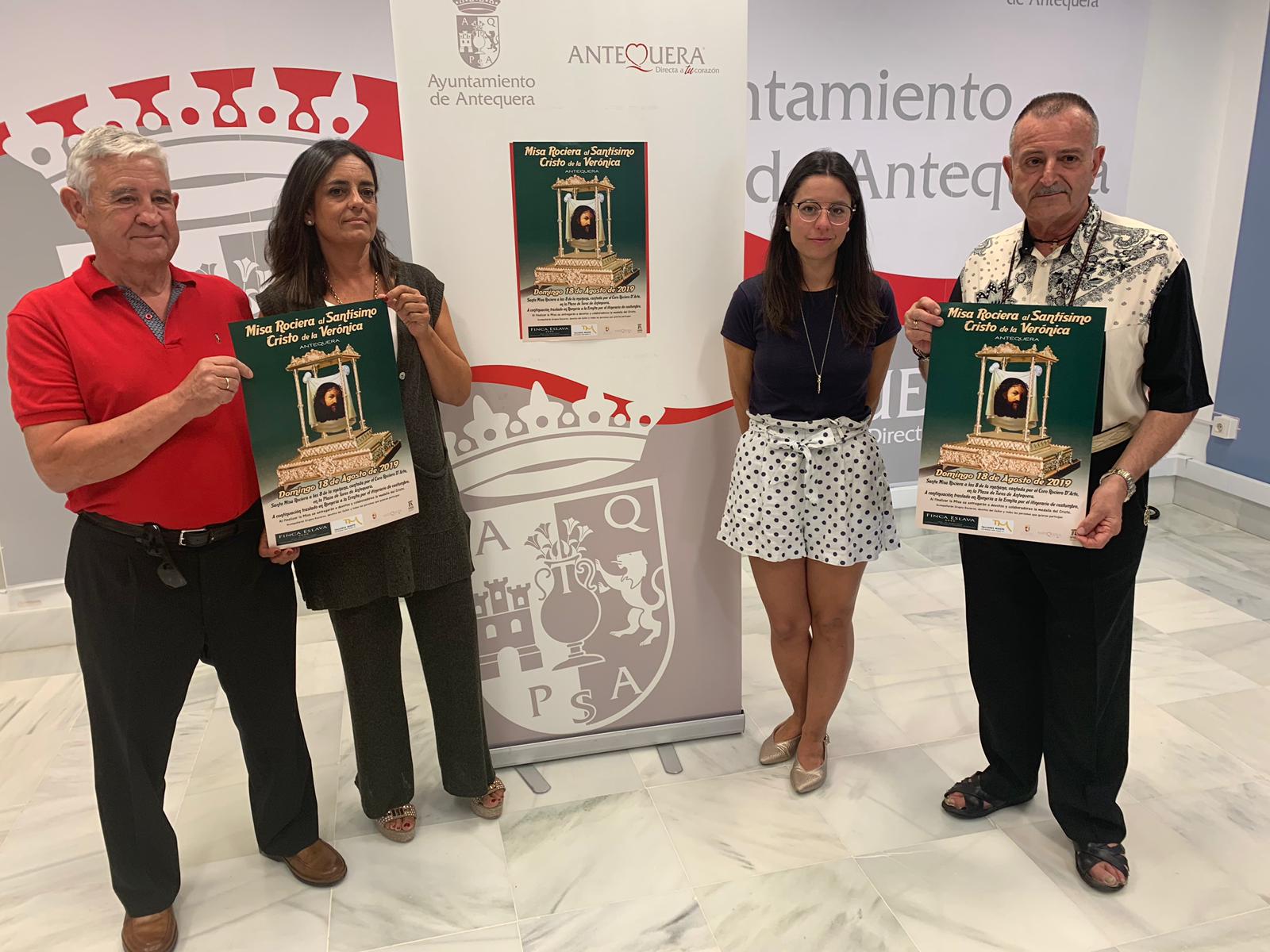 La Romería del Cristo de la Verónica, se celebrará como es tradicionalmente el domingo previo a la Real Feria de Agosto, siendo este año el domingo 18 de agosto, a las ocho de mañana en la Plaza de Toros de Antequera. La eucaristía estará presidida por el sacerdote Laureano de la Parroquia del Salvador y el Hermano Luis de la Orden de San Juan de Dios. En la eucaristía se les impondrá la medalla a todas las personas allegadas al Cristo de la Verónica. Este año nuevamente el coro ‘D´arte’ será el encargado de poner sus voces en la eucaristía y en la procesión, en un recorrido que será como viene siendo el tradicional y que será portado como el pasado año, en un trono.