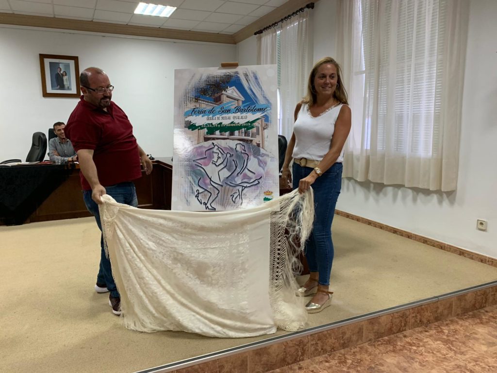 El cartel está compuesto por una imagen del Ayuntamiento, con los colores de la bandera municipal, anunciando los días de fiestas, y en la parte inferior un abanico con la imagen de dos personas bailando: “La parte superior representa a lo público, lo más representativo del pueblo, el Ayuntamiento, y después, como objeto secundario, lo que representa la feria y la gente joven: la fiesta y la diversión”, comenta este joven serrano, ilustrador y profesional del mundo del diseño residente en Málaga.