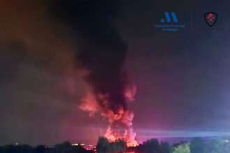 Arden un autobús, dos tráilers y una finca colindante en Antequera